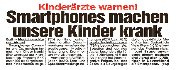 Die BILD Zeitung berichtete in ihrer Ausgabe vom 16.12.2019 auf der Titelseite über die Auswirkungen von Smartphones auf Kinder